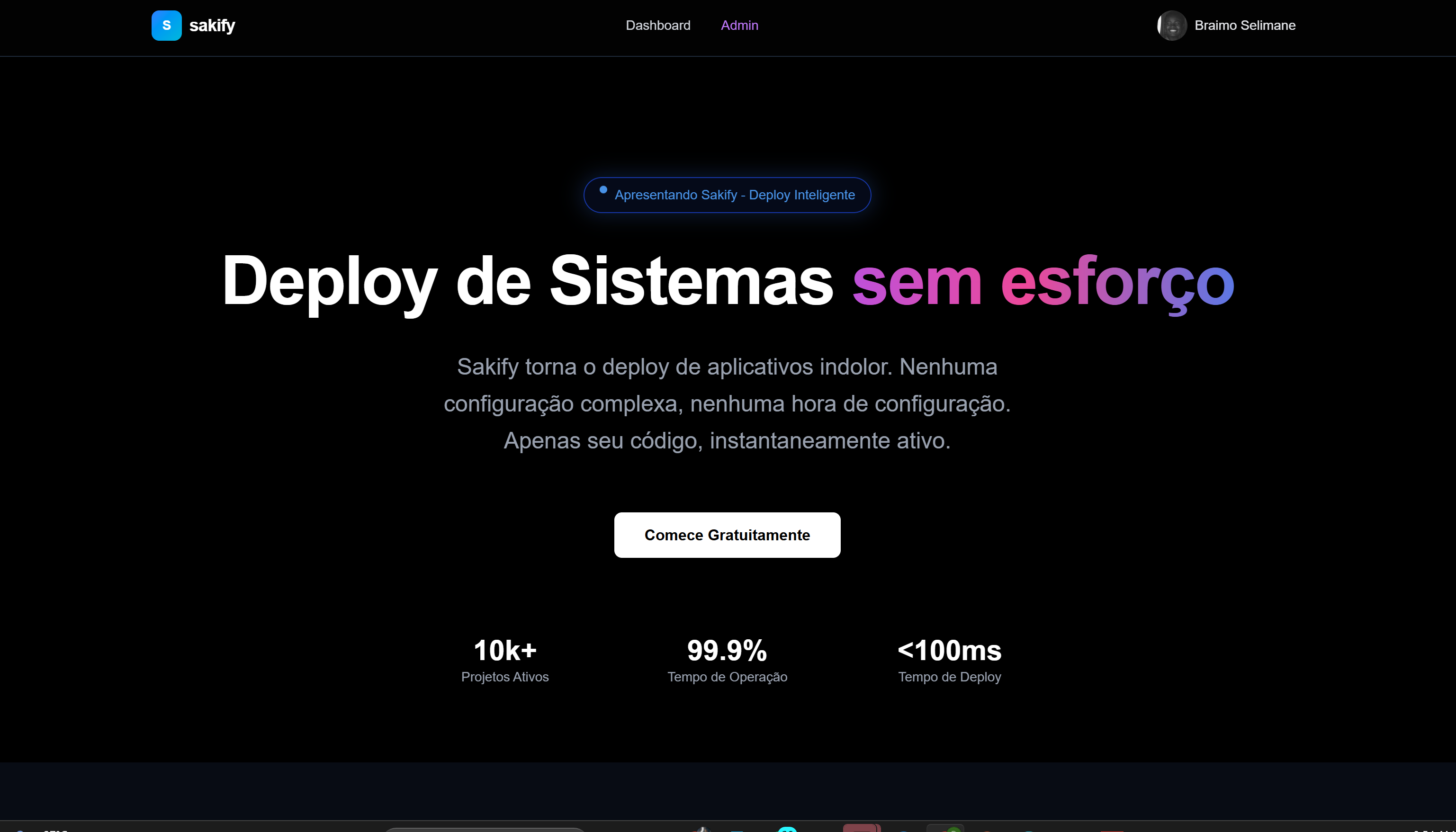 Sakify Cloud — A platform like Railway or Vercel: automatic deployment via GitHub webhooks, subscription plans, and one-click deploy for databases and apps (Node.js, Angular, Next.js, React, HTML, Python, and more).